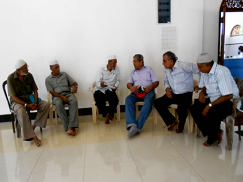 A few members of the Ithihaad Ahlis Sunnathi Wal Jamaathi (Dr Fahmy Ismail, Messrs. MSA (Sam) Cader, Nawaaf Mukthar, Ziqufy ismail and Zaeem Hameed) visited Aluthgama and Beruwela on 24th June 2014 on a request made by some of our members in Beruwela. The visit was facilitated by Br. MMM Misraj (from Beruwela) and Moulavi MRM Silmi (from Aluthgama) – both of whom had a thorough knowledge of the sequence of events, the areas damaged and the people affected.Together, we visited many sites. Although the cities appeared to be getting back to a state of normalcy, a feeling of fear and tension was hanging heavily in the air. We could not bear to hear the stories being unfolded.